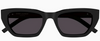 A CAT-EYE STYLE THAT RECALLS THE ICONIC AND DISTINCTIVE SHAPES OF THE MAISON. THE STYLE IS CHARACTERIZED BY THE ICONIC YSL MONOGRAM LOGO ON THE HINGE AS PRECIOUS DETAIL. THE COLOUR OFFER INCLUDES CLASSIC COLOUR COMBINATIONS.